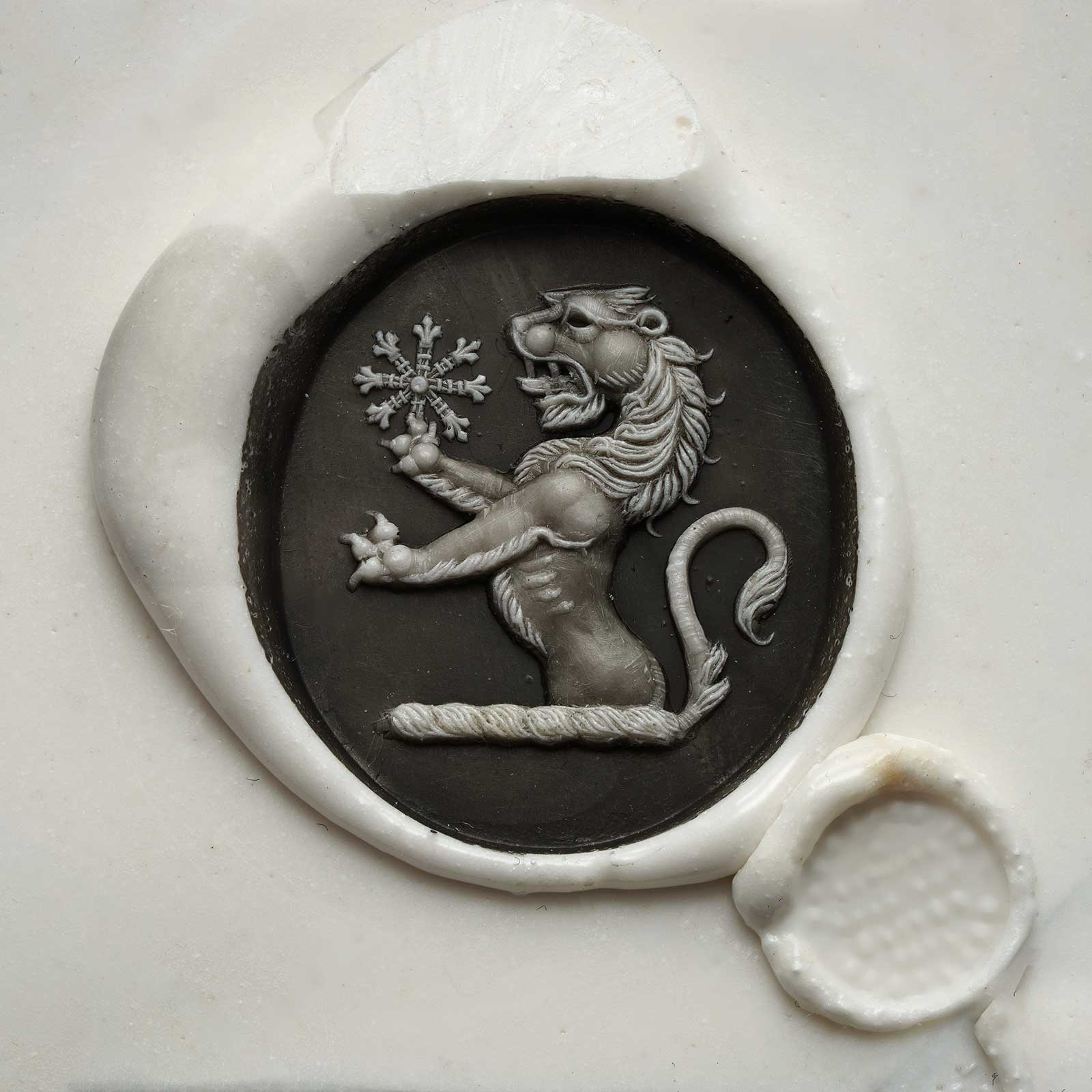 Surface-cut engraving is undertaken in much the same way that a copper plate is engraved to produce prints. Traditionally family crest is not reversed in surface-cut engraving as a wax impression would not be taken from it. Surface-cut engraving looks very effective but is not as long wearing as deep seal engraving.