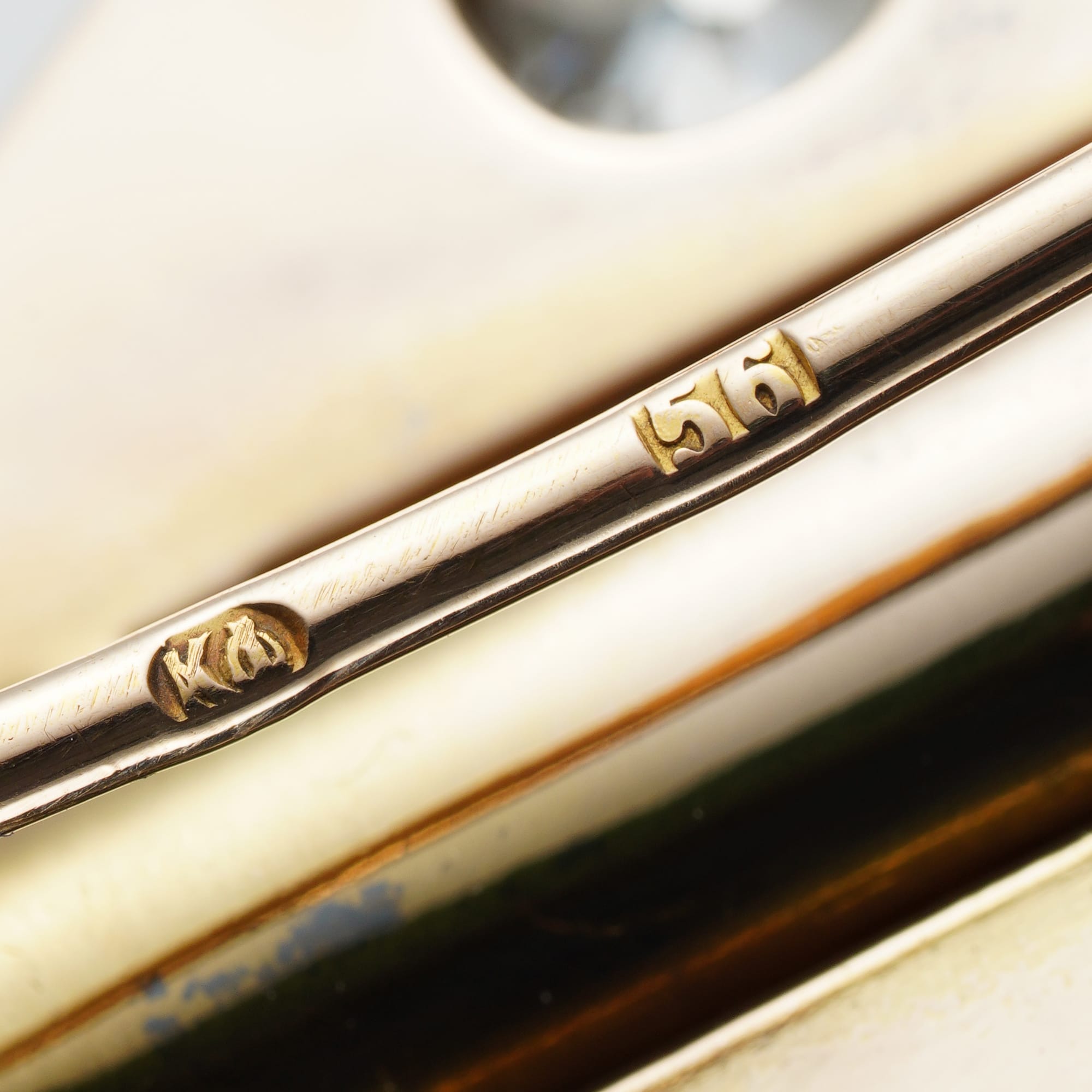 An important Fabergé brooch. Created in the shape of a gold lozenge with a white baton motif, this brooch is set with glittering diamonds, deep blue sapphires, and bright rubies. The house of Fabergé was established in St Petersburg in 1842, and by the lats nineteenth century, was Russia’s largest and most well-known jewellery house. This brooch bears the marks for Fabergé workmaster August Hollming, who is known for his surprisingly modern designs and contributions to Fabergé’s distinctive style. This brooch dates from c1890, but it could be almost Art Deco in style, exemplifying August Hollming’s modern taste and distinctive style.