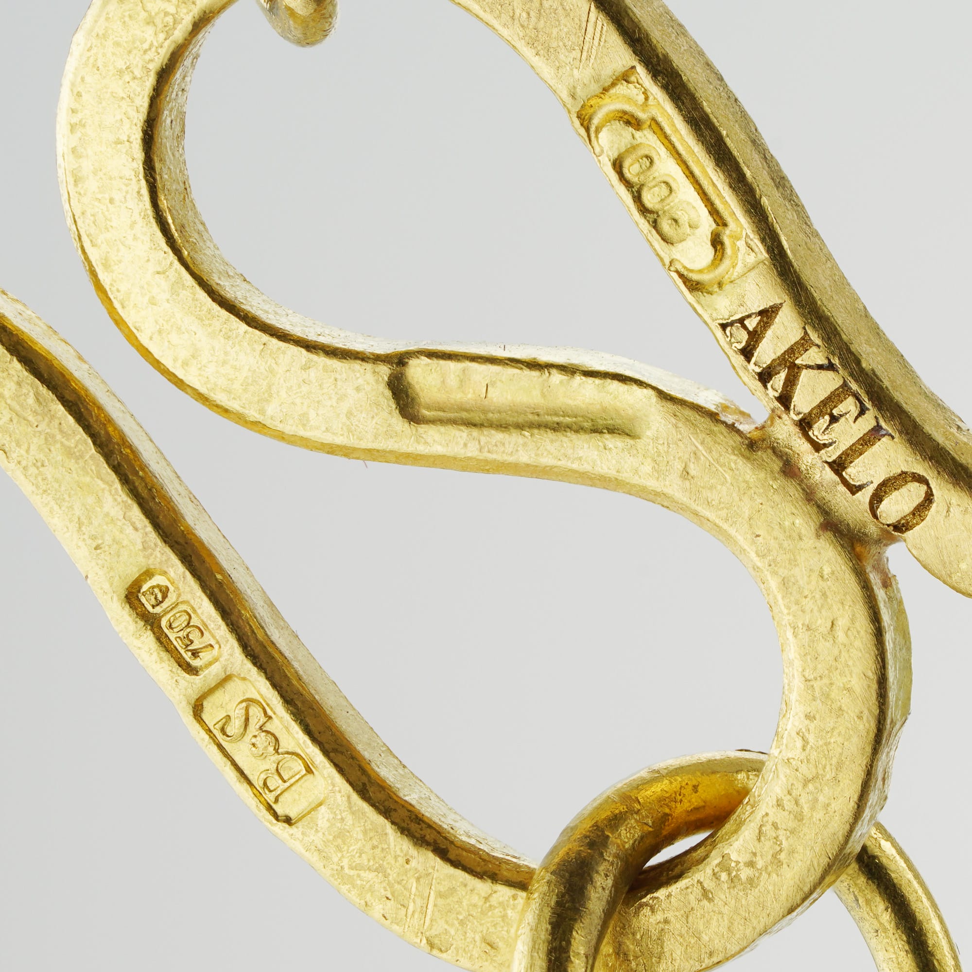 More informationA handmade chain necklace by AKELO, the loop-in-loop wire link chain 0.3cm wide, with an S-shaped clasp, all in yellow gold hallmarked 18ct London, made by Andrea Cagnetti the Roman master goldsmith known as Akelo, measuring approximately 46.5cm long gross weight 24.8 grams.