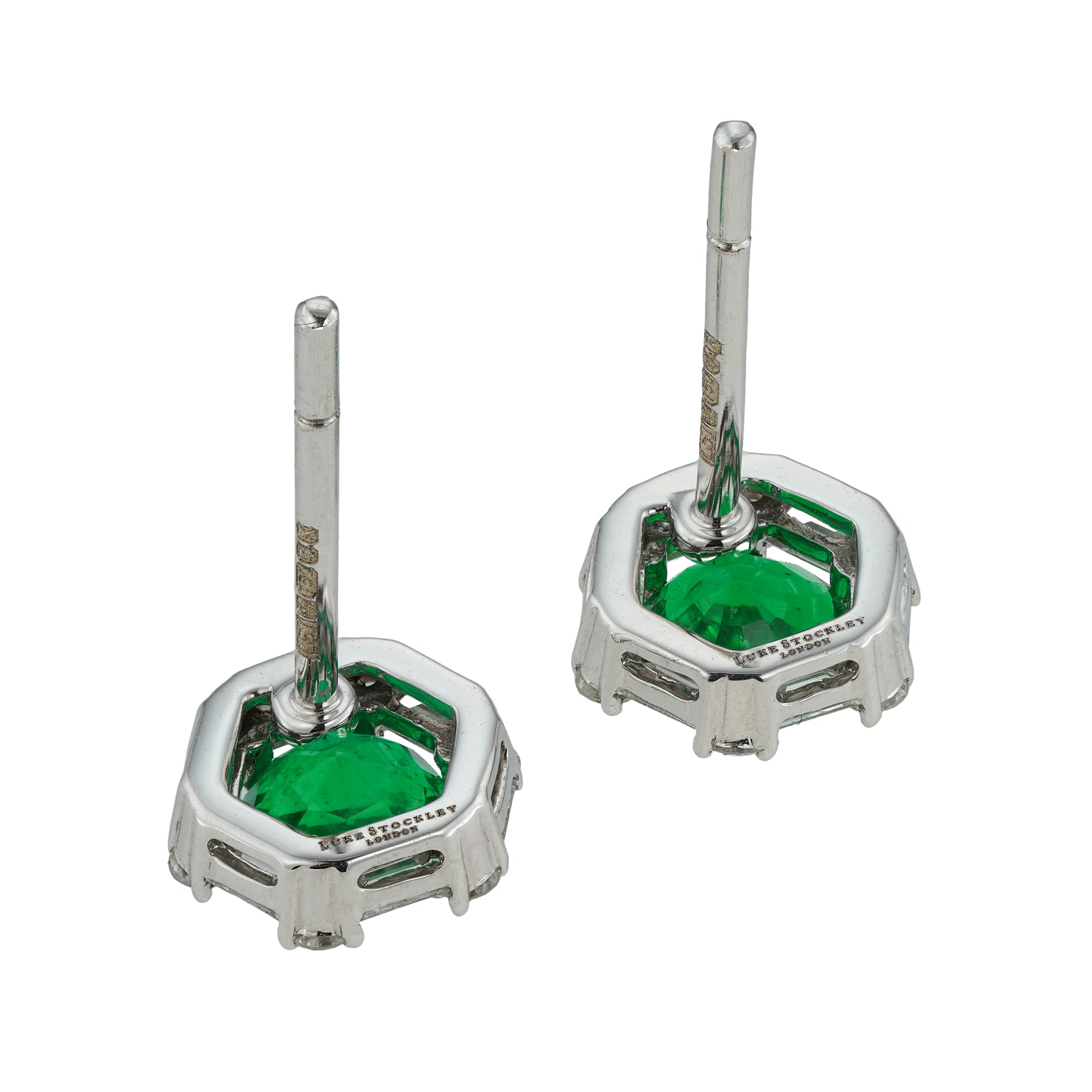 More informationA pair of emerald and diamond hexagonal cluster earrings, the two round faceted emeralds weighing 0.79 carats in total, each surrounded by a hexagonal-shaped frame set with six round brilliant cut diamonds, one on each corner, and six baguette cut diamonds in-between, the diamonds weighing 0.43 carats, all claw-set in 18ct white gold mount, with post and scroll fittings, measuring approximately 0.7cm x 0.8cm, gross weight 1.9 grams,