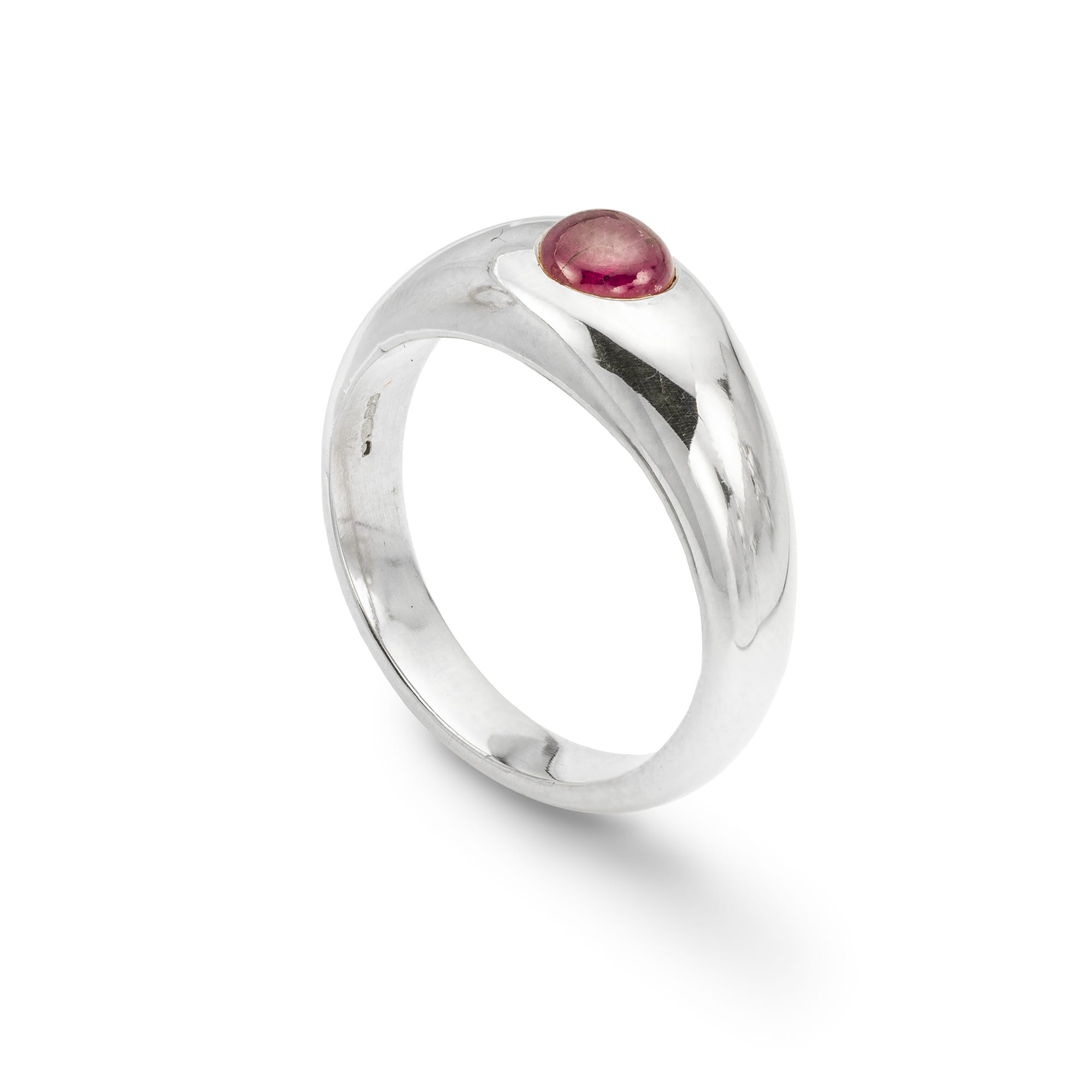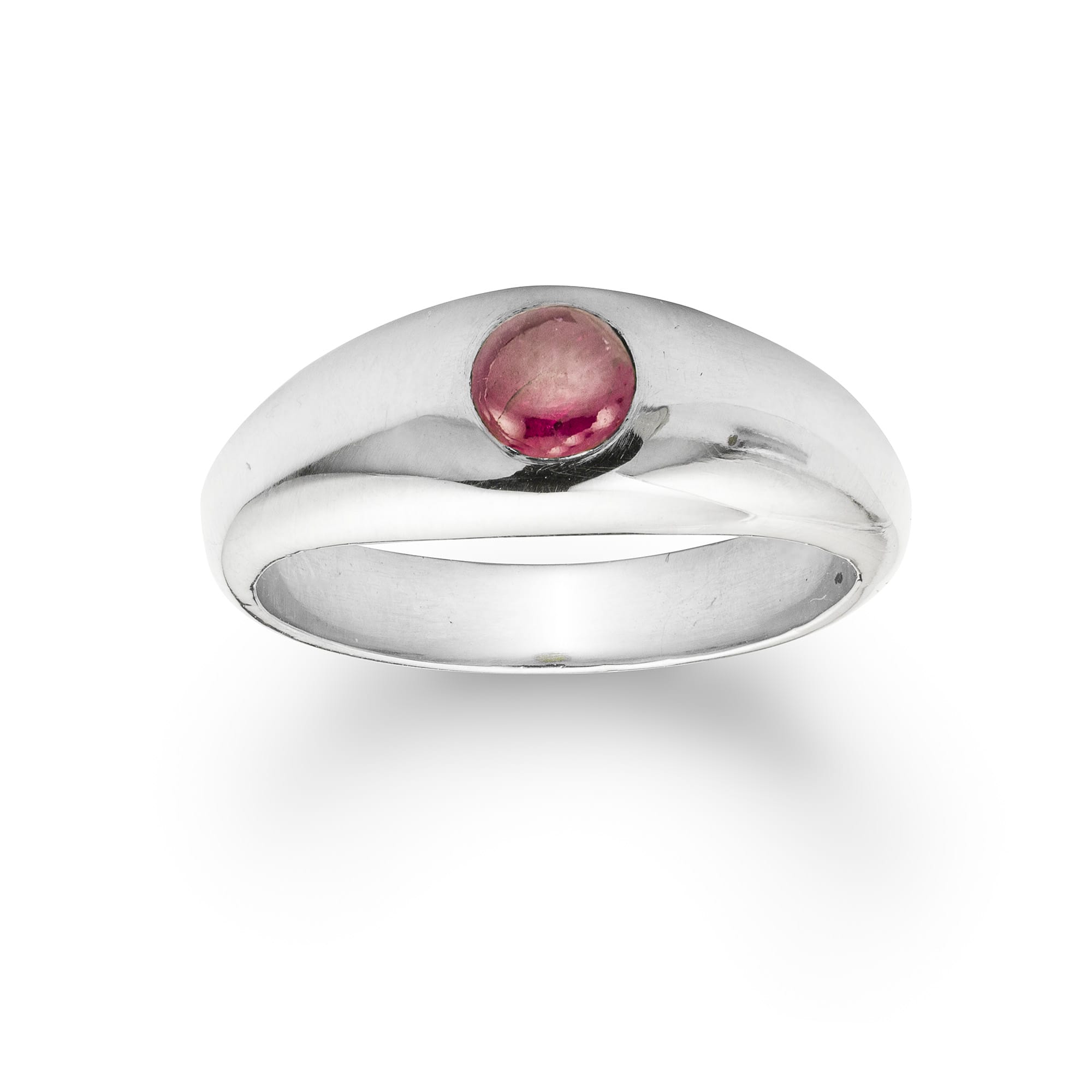 A Burma ruby set gypsy ring, the round cabochon-cut Burmese ruby, weighing 0.81 carats, in a gypsy setting to a platinum band with tapering shoulders, hallmarked platinum London 2011, made by Bentley & Skinner, head width 0.7cm, finger size M, ...