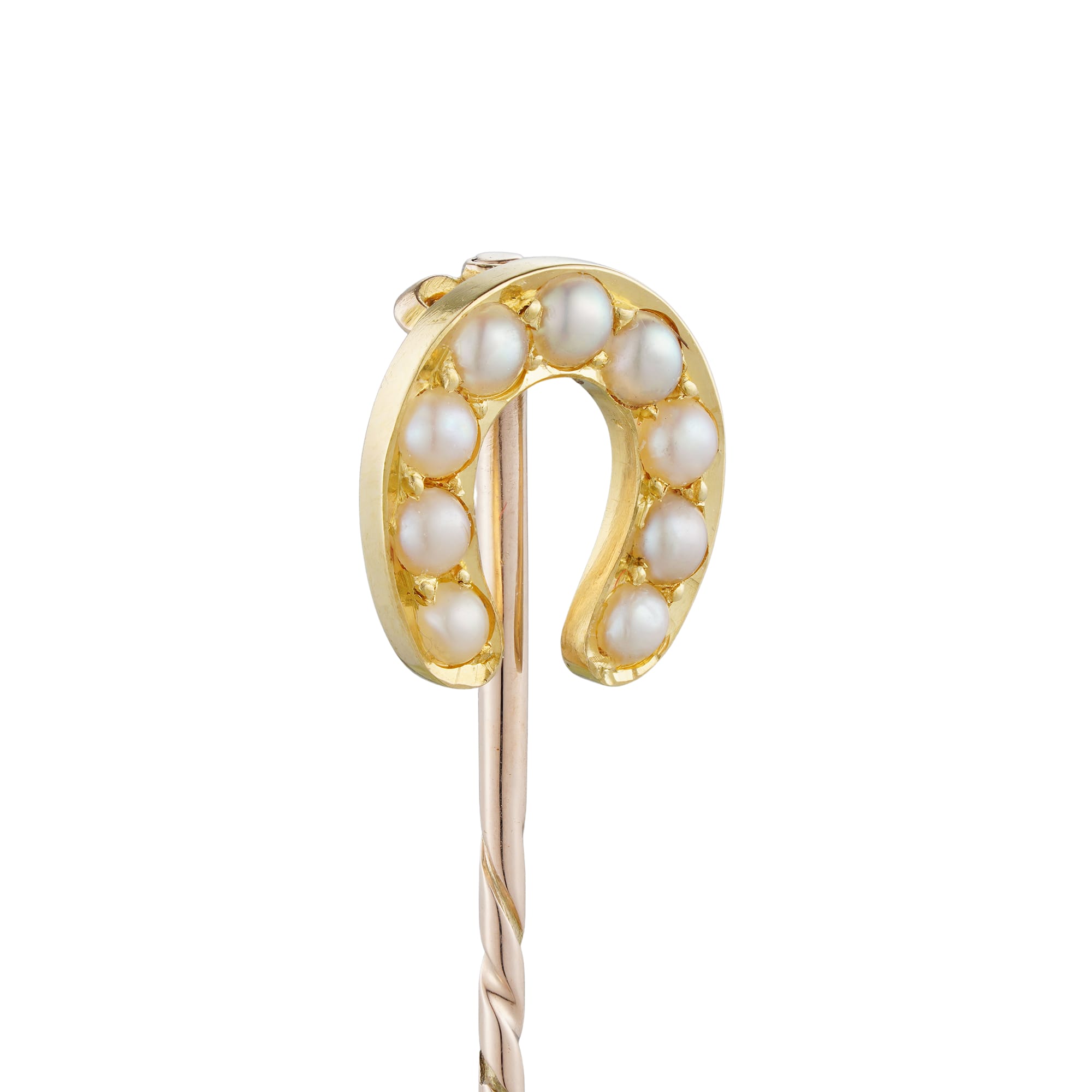 More informationA Late Victorian pearl-set horse-shoe stickpin, featuring a horseshoe embellished with nine half-pearls mille-grain set to the yellow gold mount with a yellow gold pin fitting, circa 1890, measuring approximately 5.1 x 1.0cm in total, gross weight 1.88 grams.