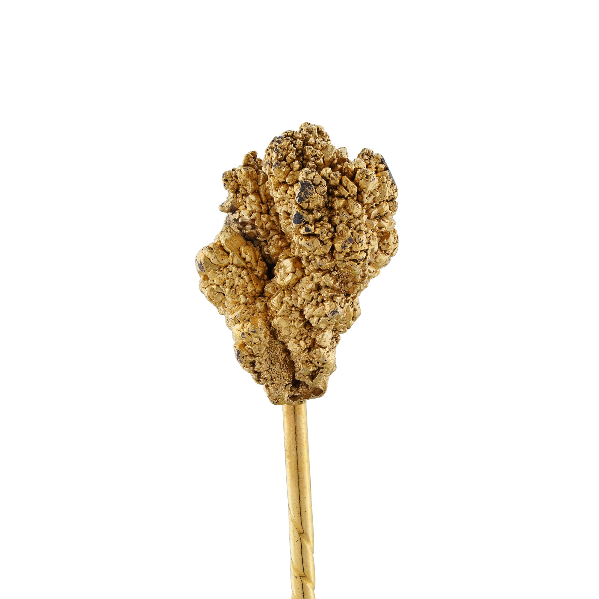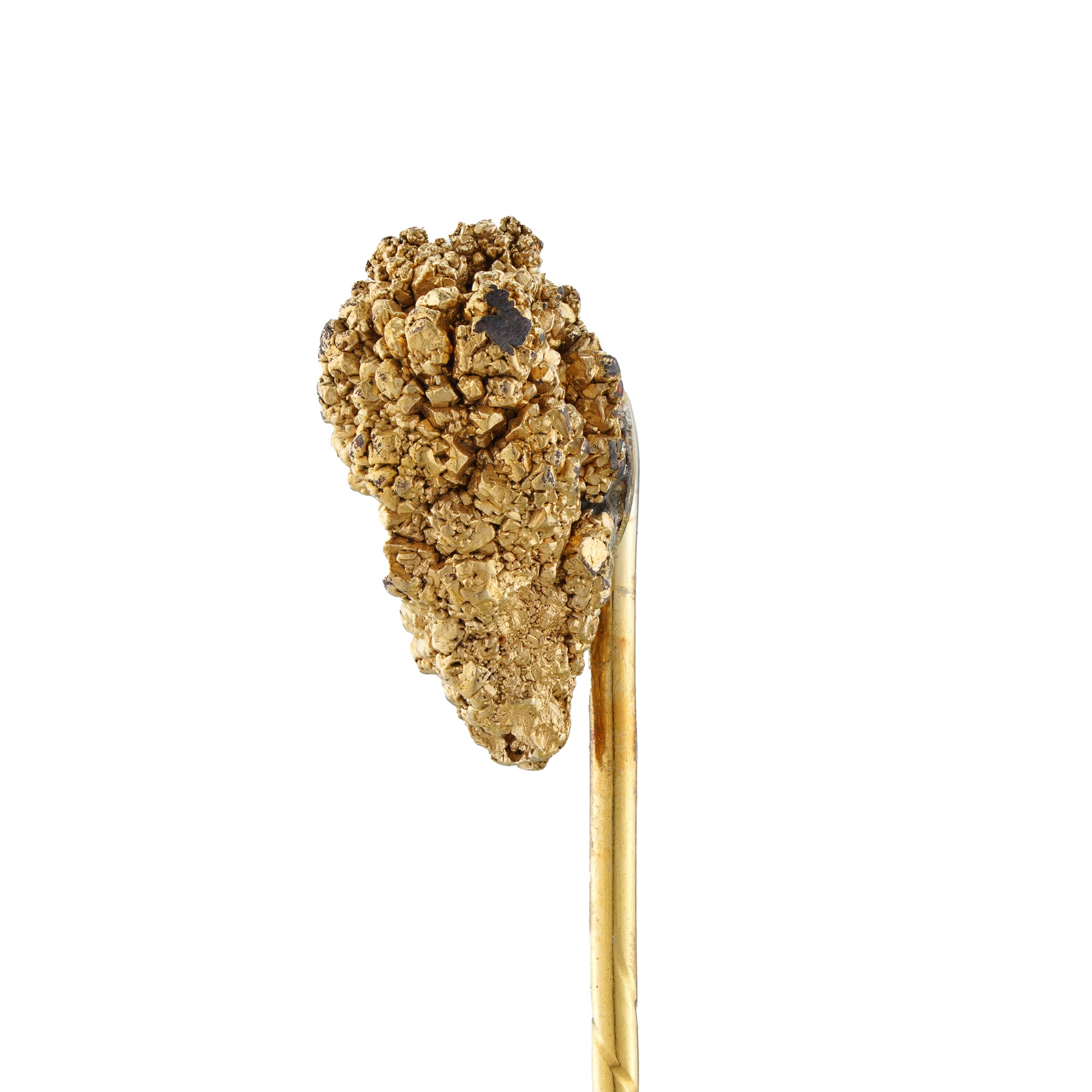 A 20th Century gold nugget stick pin, at the top a free form gold nugget mounted to a stick pin fitting of twisted design, measuring approximately 6 x 1cm, gross weight 4.7 grams.