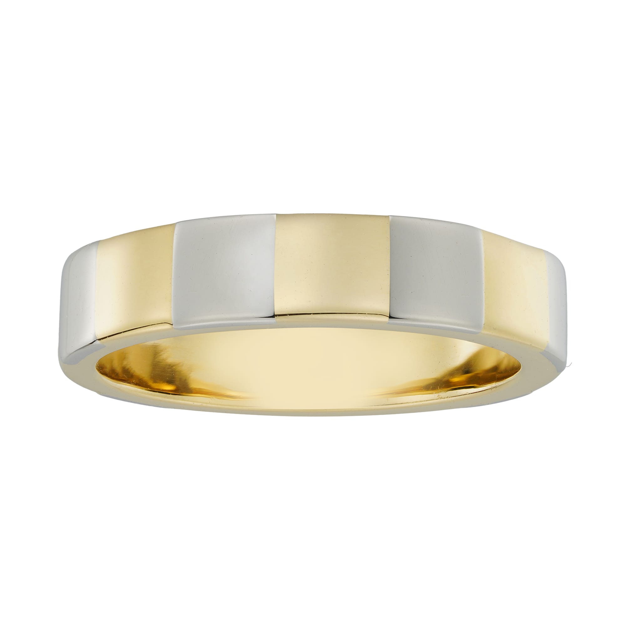 A charming yellow and white gold ring. The ring features parallel sections of yellow and white gold bands, intertwining in a sleek and contemporary striped pattern. Dating back to circa 2000, its modern aesthetic is balanced with timeless elegance, making it a sophisticated choice for any occasion.
