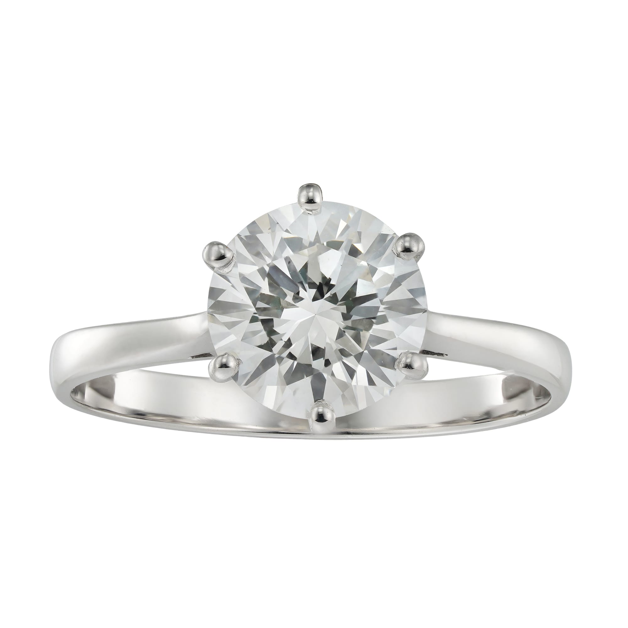 A solitaire diamond ring, the round brilliant-cut diamond weighing 1.67 carats and accompanied by De Beers grading report stating to be of H colour and VS1 clarity, six claw-set to an openwork gallery and tapering D-section shank, mounted in white gold, hallmarked 18ct gold, London, 2023, bearing the Bentley & Skinner sponsormark, measuring 1.9 x 0.9cm, finger size N½, gross weight 2.4 grams.