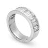 A chic and elegant half eternity band set with glittering baguette-cut diamonds. The diamonds are channel set in platinum, and they catch the light wonderfully. This piece would make a sparkling wedding band or a sophisticated piece for everyday wear.