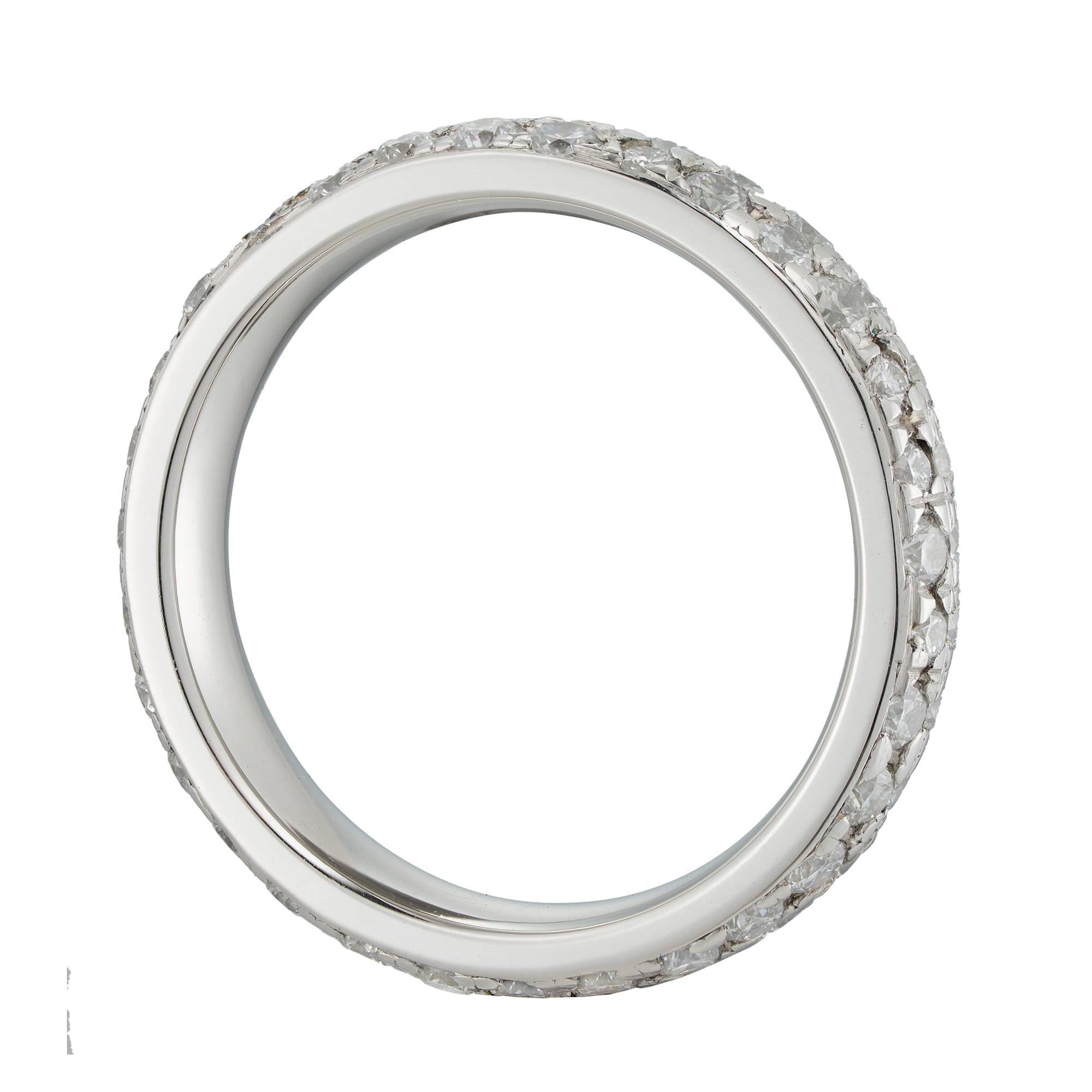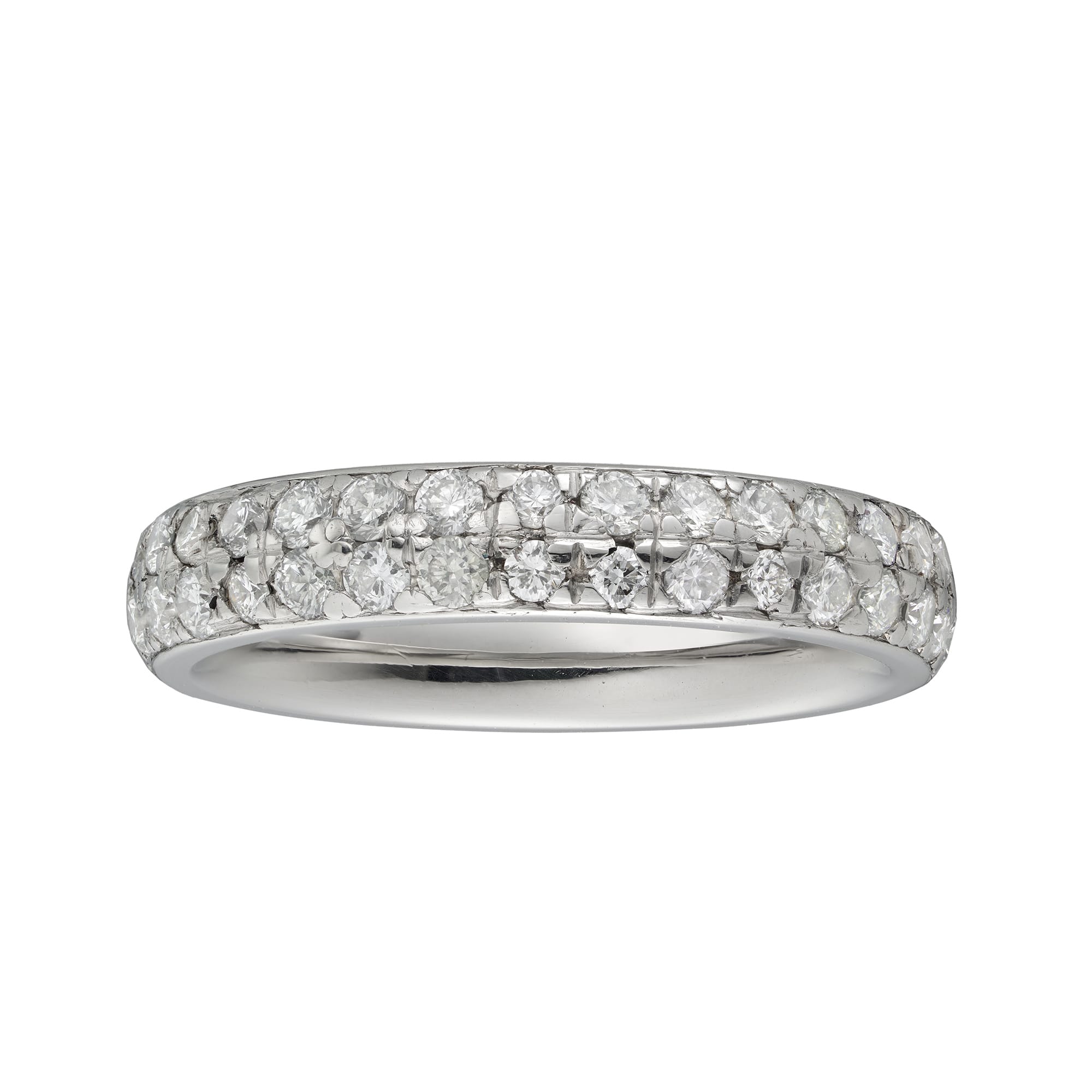 A diamond double row eternity ring, consisting of two rows of small round brilliant-cut diamonds estimated to weigh 0.95 carats in total, assessed to be of G-H colour and VS-SI clarity, all claw-set in platinum mount, hallmarked platinum 950, Birmingham, ...