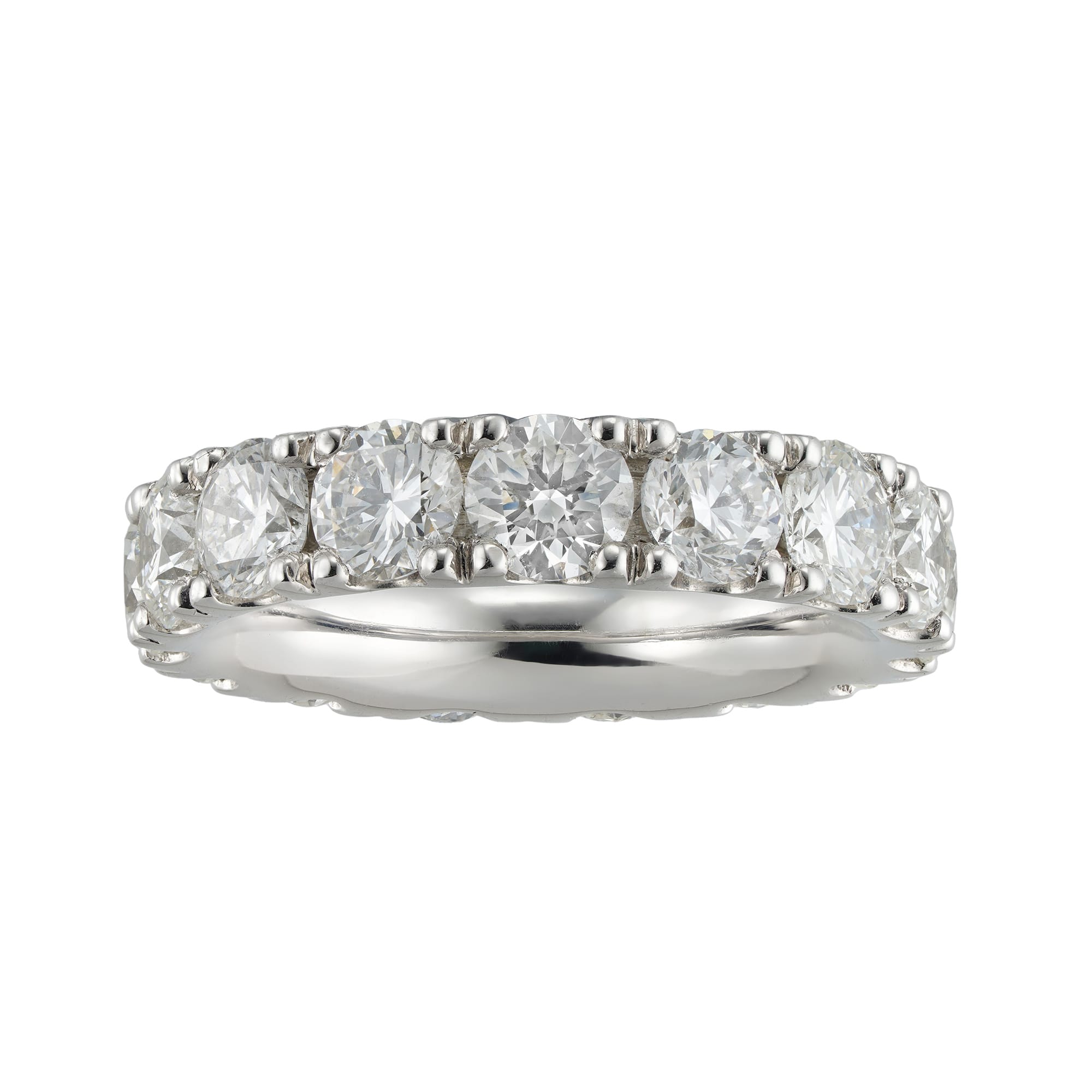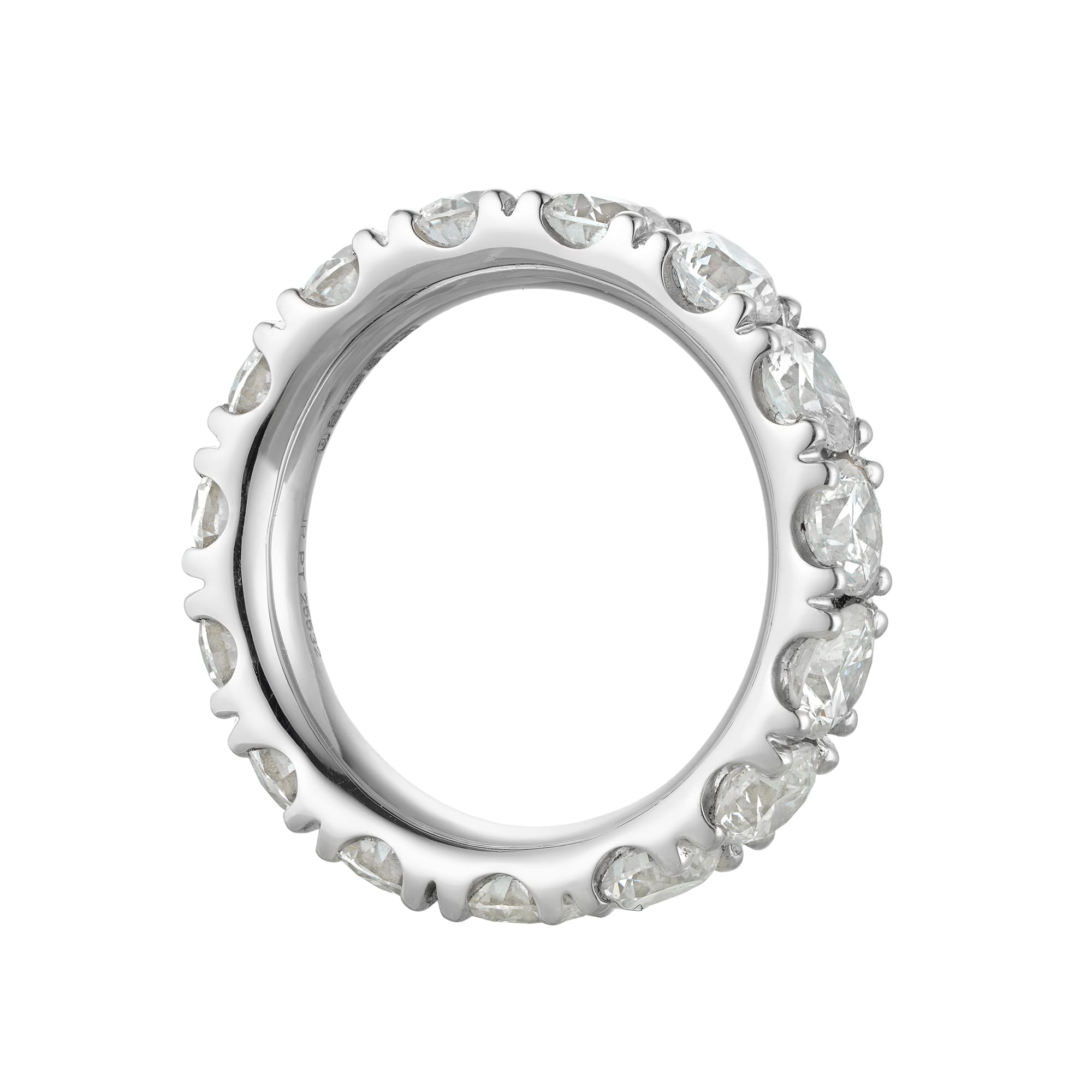A diamond full eternity ring, fifteen round brilliant-cut diamonds, weighing 4.57 carats in total, assessed to be of G colour and VS clarity, claw-set to a platinum mount measuring approximately 4.5mm wide, hallmarked platinum 950, London 2018, gross weight 7.7 grams.